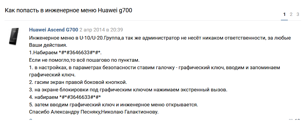 | Huawei | *#*#2846579#*#* или *#*#2846579159#*#* |