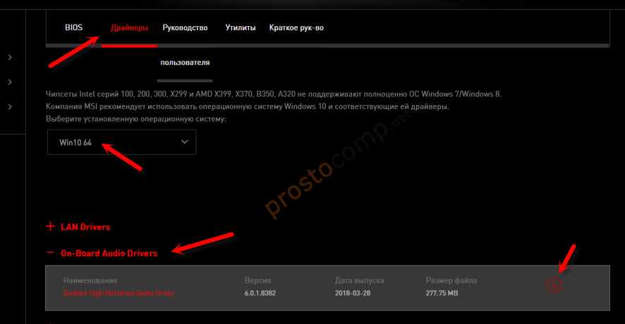 И загружаем Audio Drivers. В моем случае это Realtek High Definition Audio Driver.