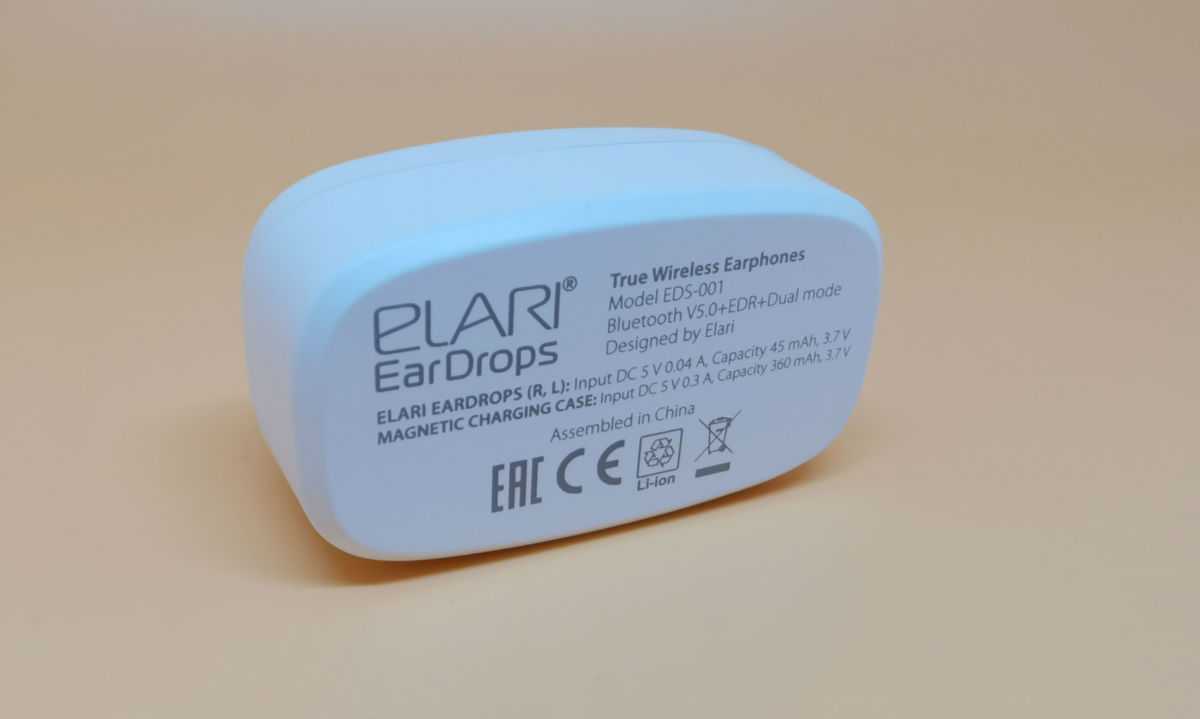 Наушники elari nanopods поступают в продажу в компактном черном или белом футляре, изготовленном из недорогого пластика. Легкий вес и небольшие габариты позволяют транспортировать гарнитуру в небольшом кармане.