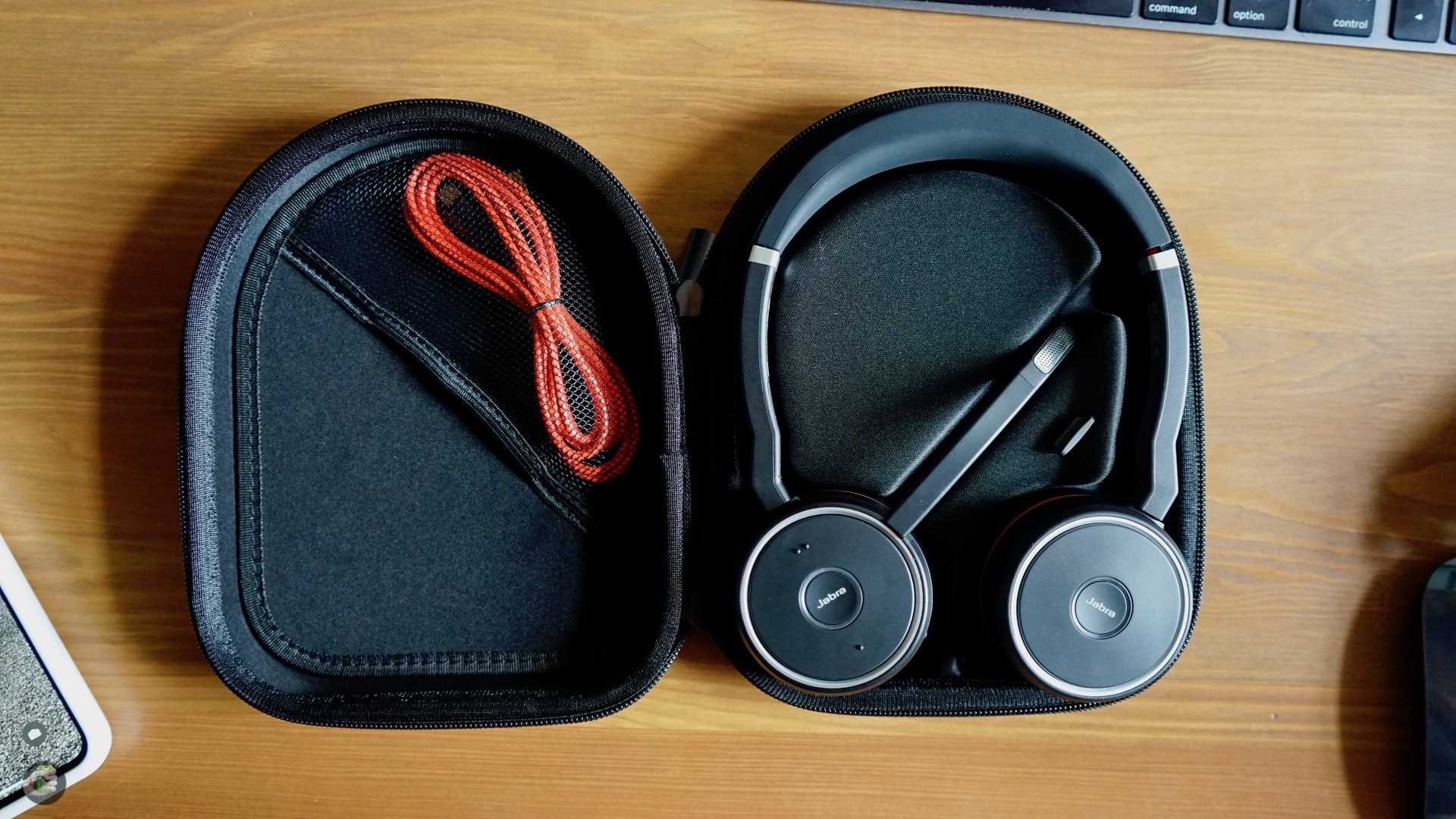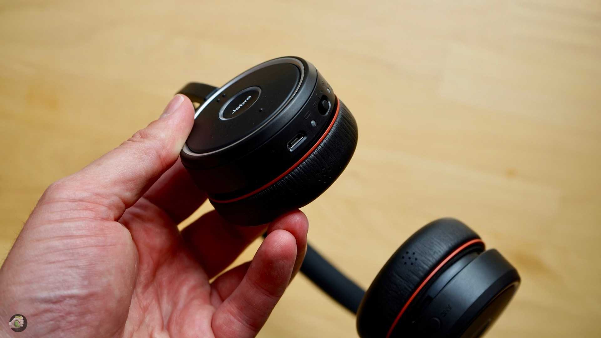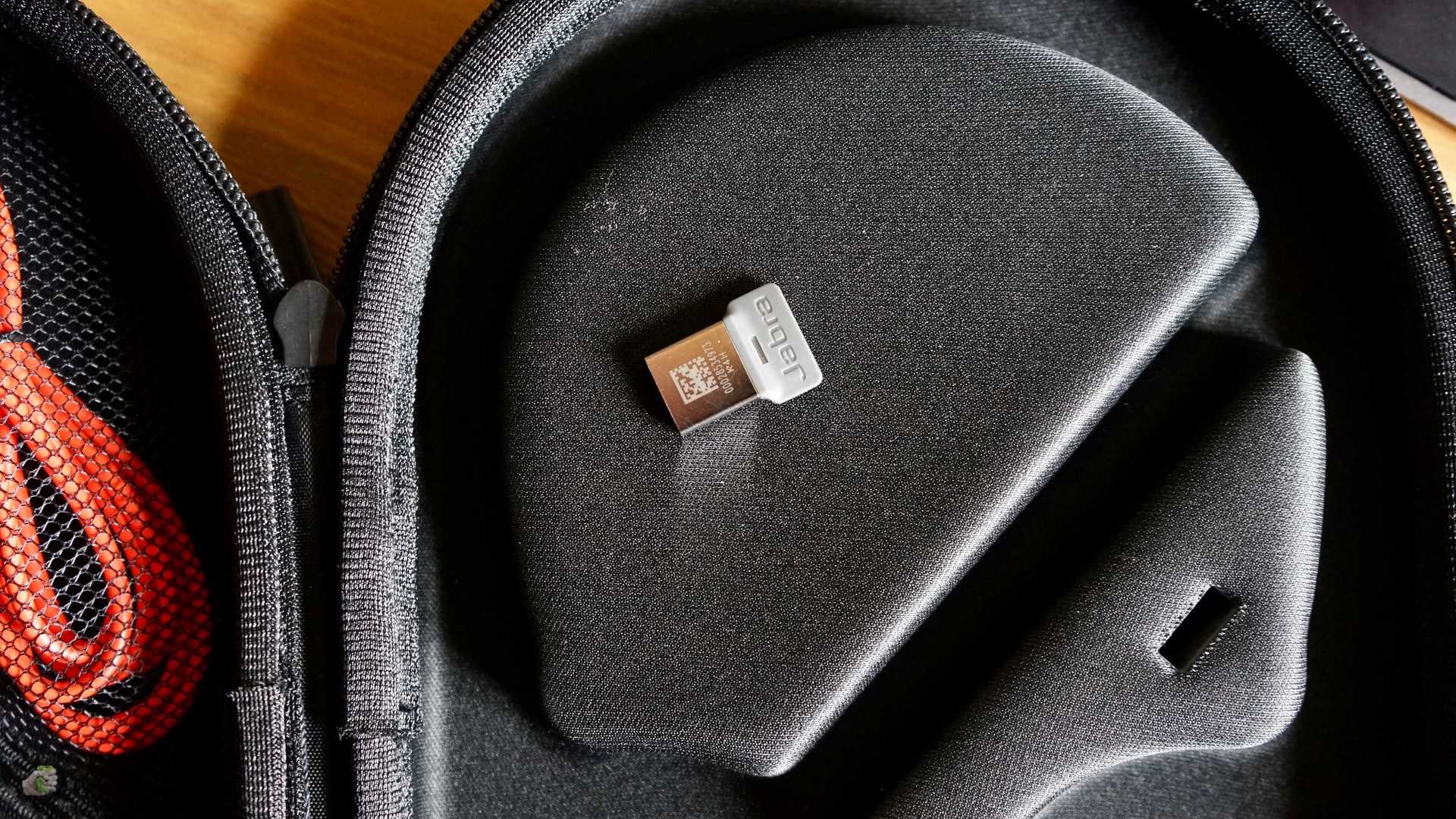 В комплекте с наушниками массивная удобная подставка, USB-донгл для использования с компьютерами и кабель micro-USB. Дорогие товарищи в Jabra, давайте уже забудем про micro-USB. Очень хорошо использовать USB Type-C везде, где только можно это делать. Подставка лишний раз напоминает о корпоративном ДНК, как бы это ни было странно, мне она понравилась.