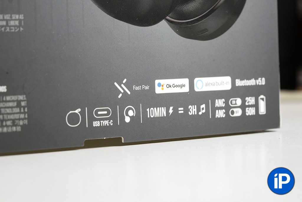 Полноразмерные bluetooth наушники с активным шумоподавлением позволяют слушать любимую музыку в течение 40 часов с включённой ANC и до 50 — с выключенной.