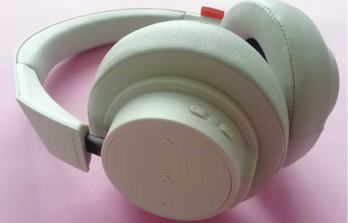 На левом «ухе» аж пять кнопок: «вперед», «назад», «пауза» и качелька громкости. Кнопки для переключения треков расположены на тыльной стороне чашки, вначале было неудобно нажимать прямо на корпус наушников — легко не рассчитать усилия и вдавить амбушюр в ухо. Но привыкнуть можно, к тому же кнопки громкости находятся на привычном месте — ребре чашки. Здесь же, на левой стороне, расположены все разъемы — micro USB и аудиовход 3,5 мм.