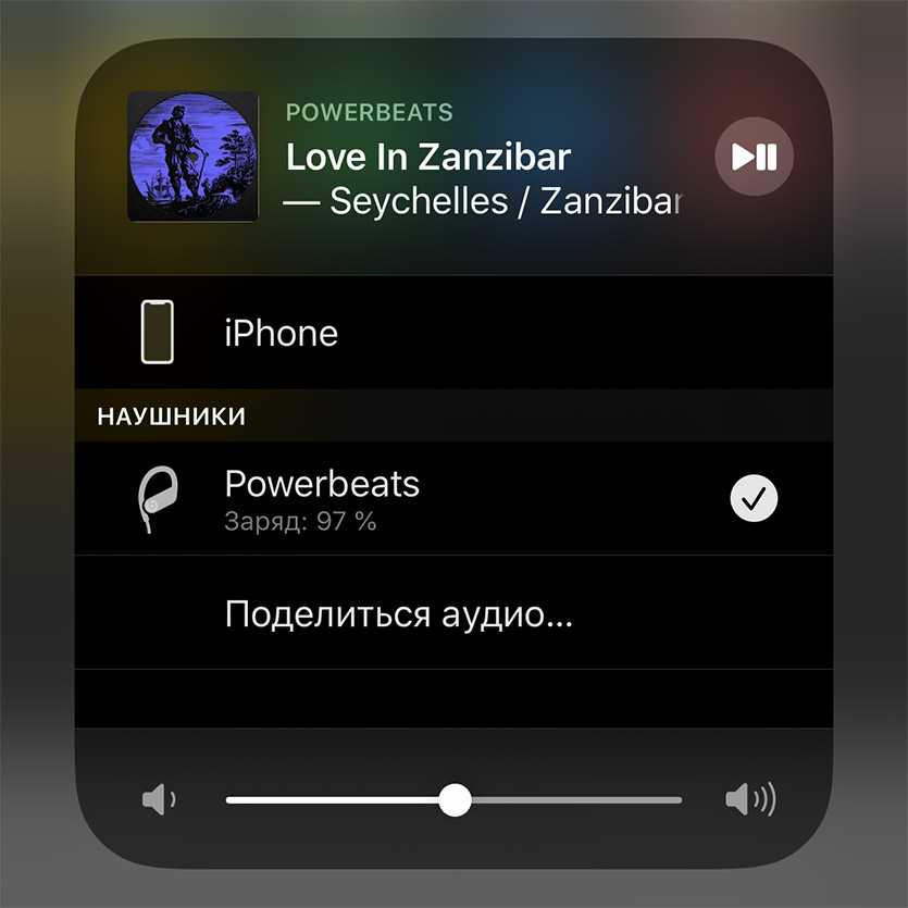 Можно делиться музыкой с другими через уже знакомые механизмы iOS. Подключение к iPhone и iPad происходит супер-быстро и сопровождается анимированной карточкой, а в Пункте управления на слайдере громкости отображается иконка этих наушников.