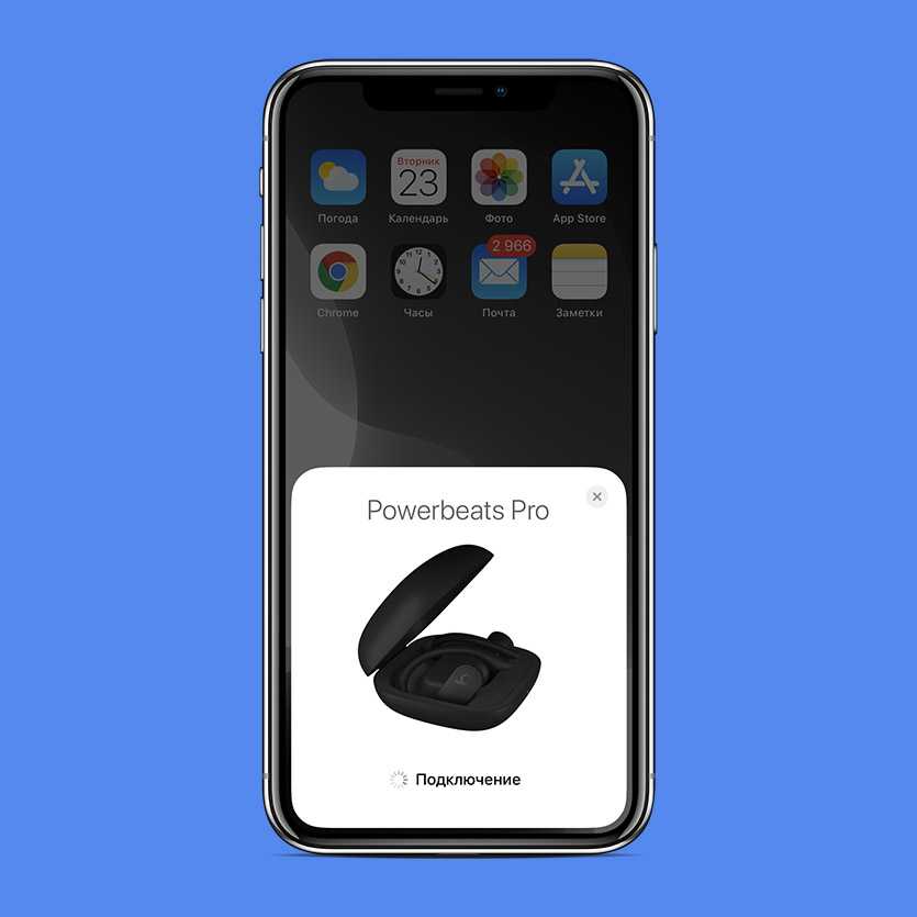 Достаточно открыть крышку кейса рядом со смартфоном, чтобы на экране появилось предложение подключить Powerbeats Pro.