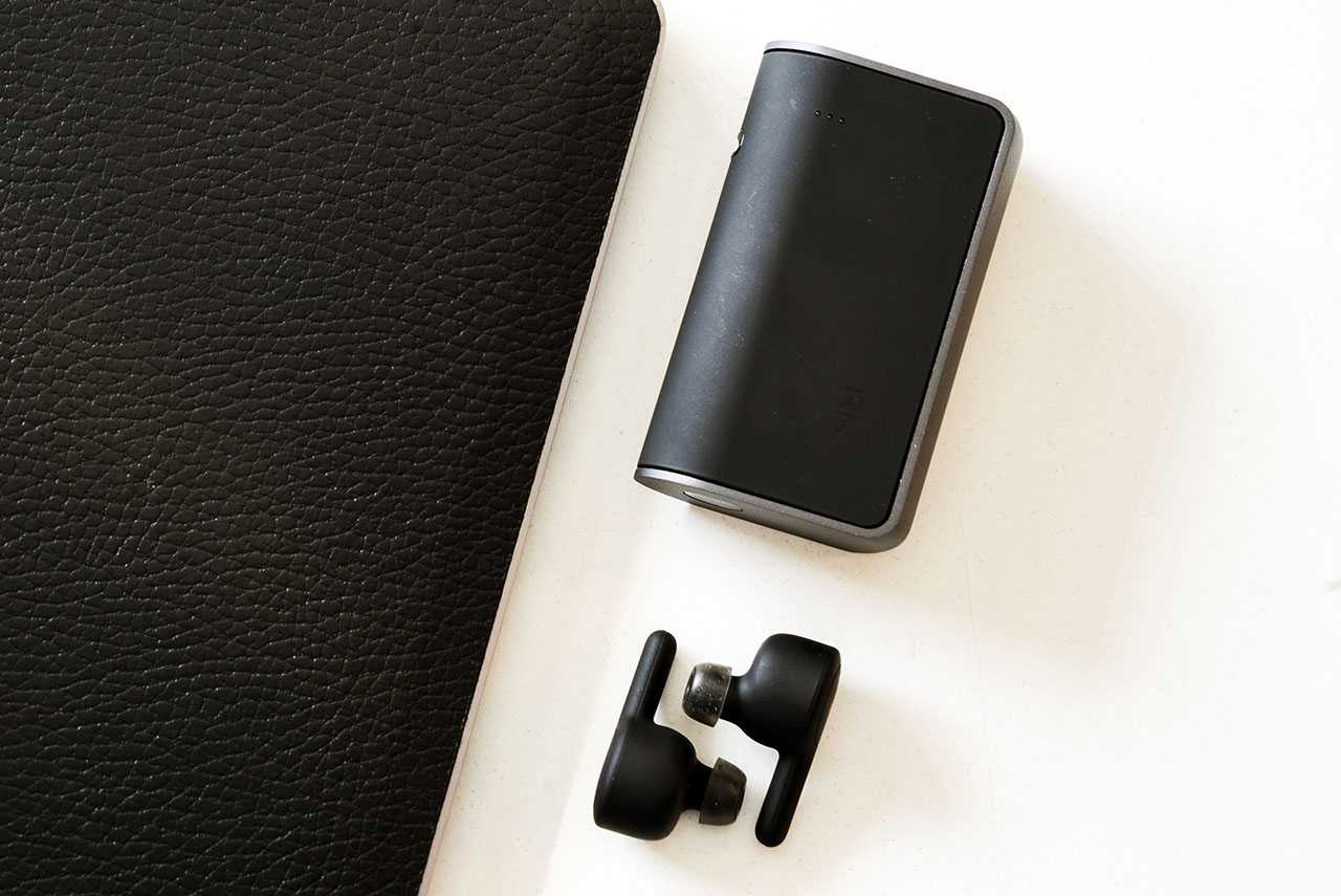 Как и конкуренты в сегменте True-Wireless, эта модель комплектуется зарядным кейсом. Как и сами наушники, он полностью пластиковый (за исключением петель). Но ничего не поделать: масса в этом классе значит очень много.