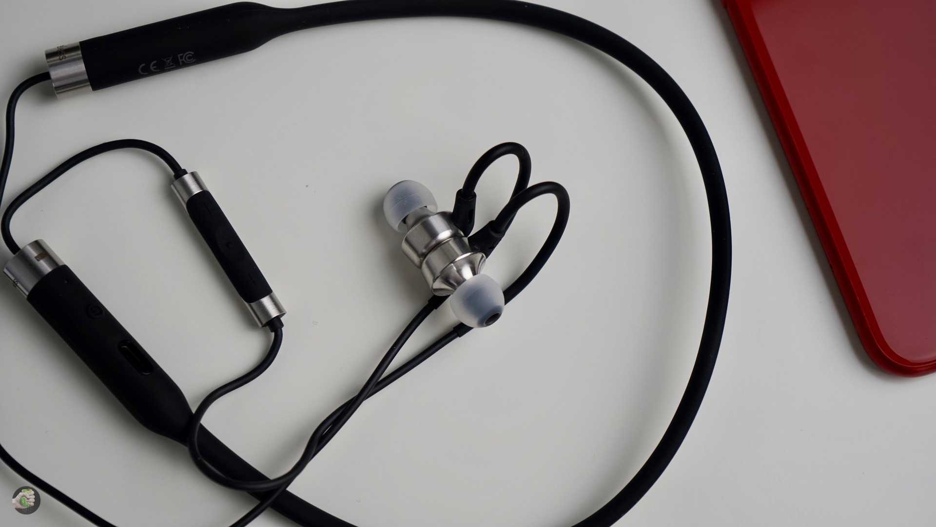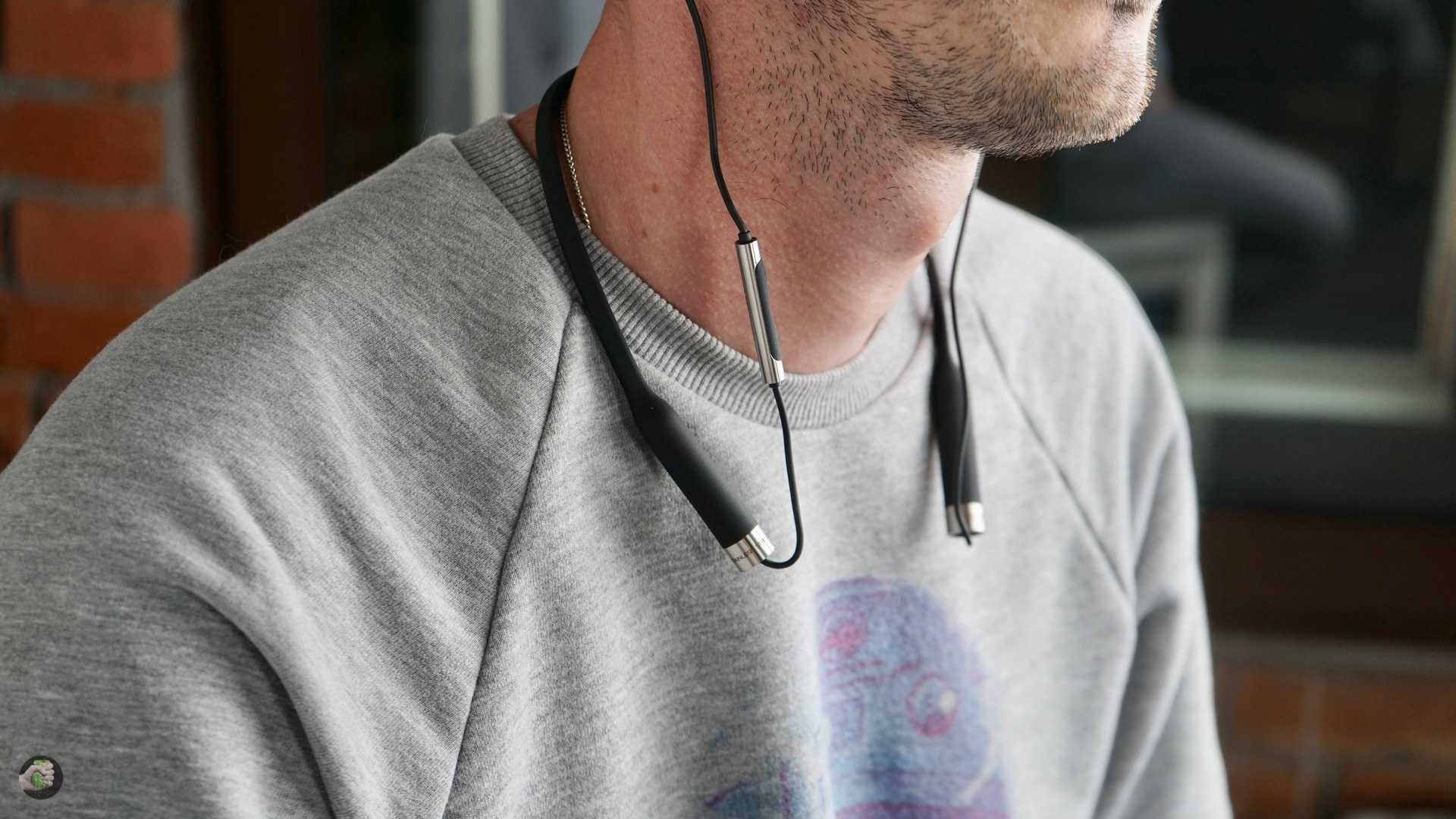 Стандартный пульт ДУ, три кнопки, все функции привычны: ответ на вызов, управление воспроизведением, активация голосового помощника. Из любопытных особенностей выделю защиту от брызг (IPx4). В воде плескаться не советую, мыть наушники тоже. Ради красоты никаких убогих заглушек на разъёме USB Type-C делать не стали, кнопка включения на ожерелье кликает здорово, к управлению никаких вопросов нет.