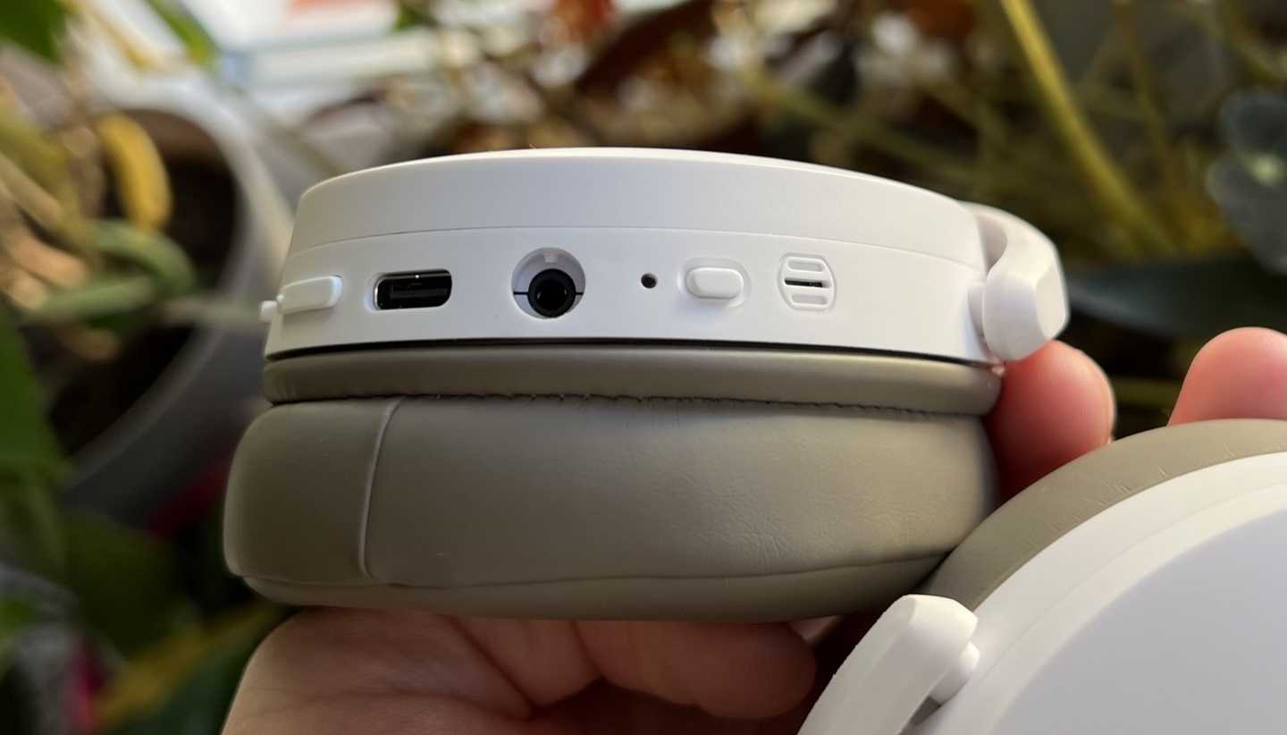 Далее видим разъем для зарядки (ну хоть где-то до «сенхов» дошел прогресс — у PXC 550 II и TWS-модели Momentum TW3 были устаревшие разъемы microUSB), затем 2,5 мм отверстие для подключения аудиокабеля, индикатор работы (мигает в режиме сопряжения, при зарядке цветом показывает ее уровень).