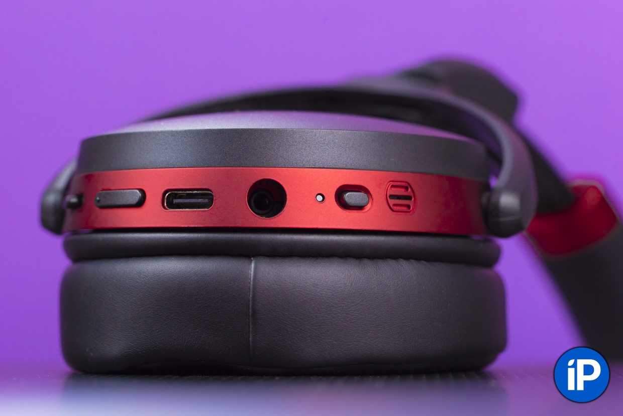 Элементы управления и разъемы для проводных подключений, включая USB-C для зарядки наушников, сконцентрированы на нижней грани правого «уха».