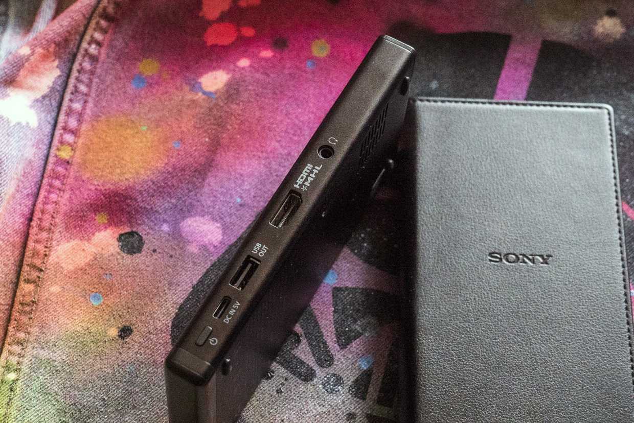 Логичный вопрос возникнет у любителей кемпинга: а что у Sony MP-CD1 с защитой? К сожалению, порты открыты, а корпус без резиновых накладок. Тем не менее, проектор работает в диапазоне температур от 0 до 35 градусов. Если холоднее (до 15 градусов), достаточно предварительно согреть устройство, дальше оно будет поддерживать себя самостоятельно.