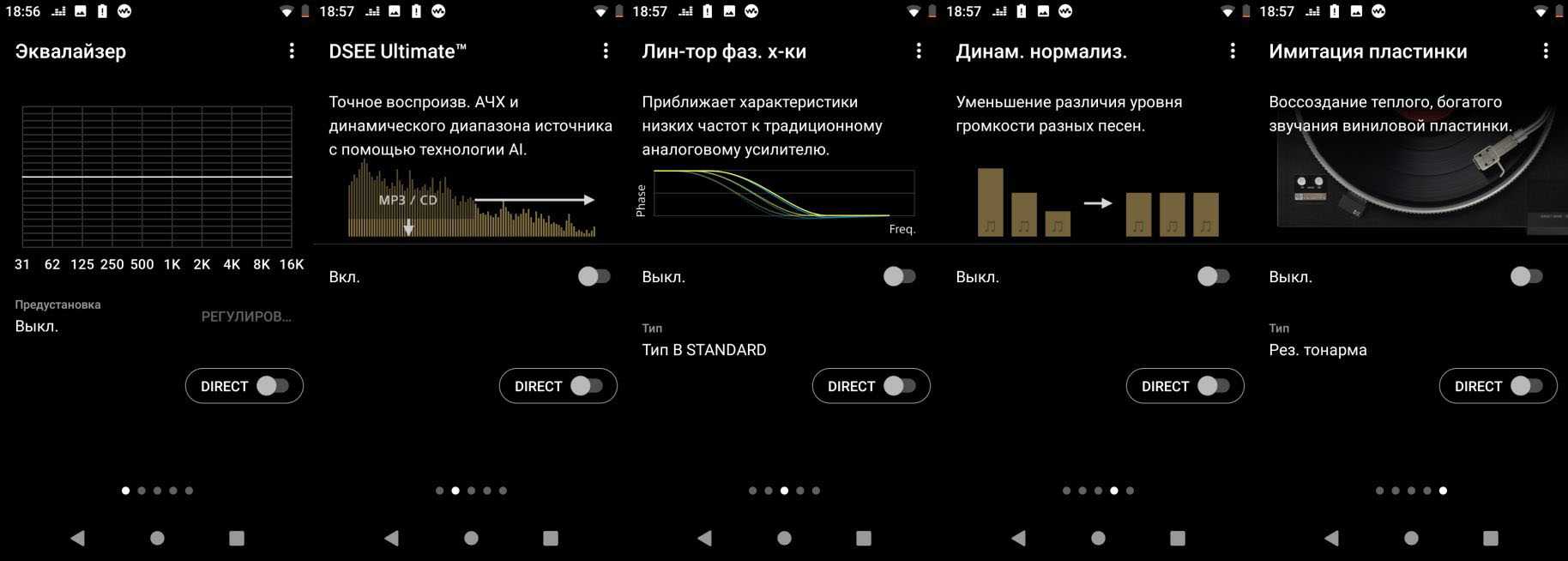 Помимо этого, одним из стандартных приложений стала «Настройка звука». Тут вы можете внести некоторые коррективы в звук. Например, установить компрессор, настроить эквалайзер и включить имитацию пластинки:
