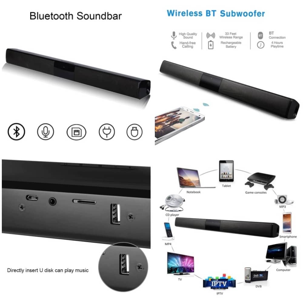 Классный саундбар из Китая. Использовать его можно ак для расширения аудиовозможностей ТВ и в качестве отдельной музыкальной системы для дома. TV Speaker воспроизводит звуки в диапазоне от 80 до 20000 Гц и обладает мощностью в 30 Вт. Для подключения к устройствам предусмотрен скоростной Bluetooth 5.0 или 3.5-миллиметровый разъем AUX.