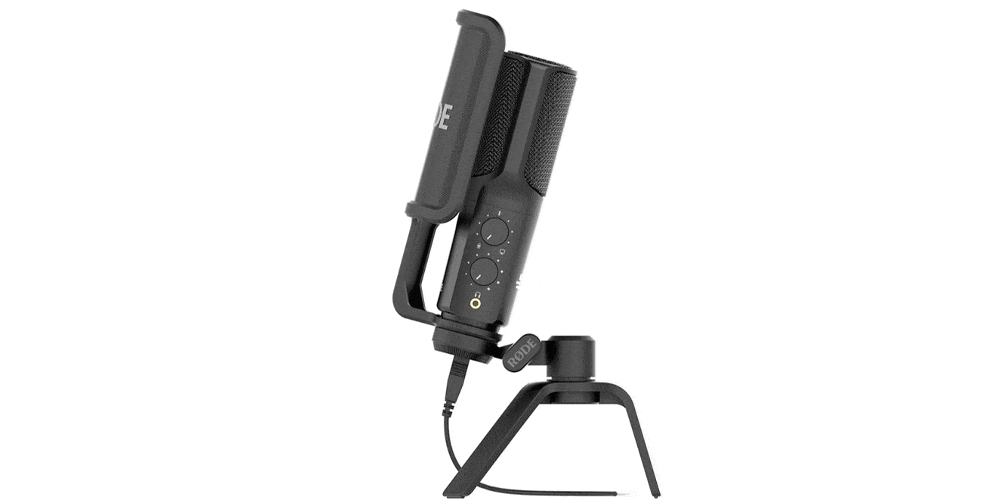 Пятёрку лучших закрывает RODE NT-USB. Подключение его происходит через разъем USB. Сбоку на корпусе установлены две поворотные кнопки для настроек и разъем для наушников. С помощью последнего можно мониторить звучание в режиме реального времени (задержка нулевая) или прослушивать сведенные файлы с ПК, на который происходит запись. С помощью поп-фильтра можно минимизировать резкие звуки. Для него предусмотрено крепление в месте установки микрофона. При этом выверено оптимальное расстояние до капсулы.