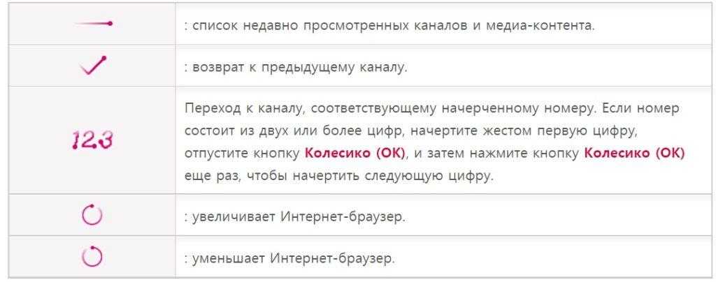 Включать и выключать телевизор, регулировать громкость и переключать каналы можно с помощью жестов на пульте Magic Remote. Удерживайте кнопку «ОК» несколько секунд, после чего на экране телевизора появится круг. Снова удерживая кнопку «ОК», сделайте любой жест пультом в воздухе. Его графическое отображение появится на экране. Чтобы Смарт-телевизор исполнил команду, необходимо отпустить колесико с кнопкой «ОК».