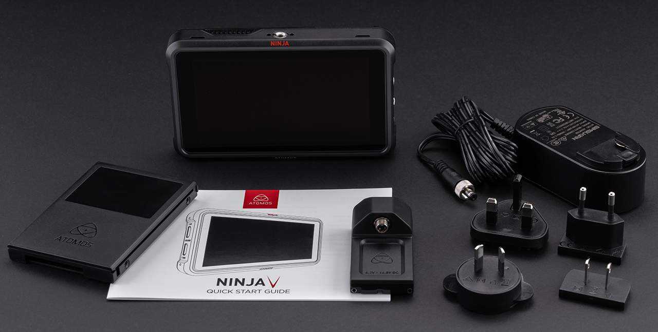 Независимо от того, как вы планируете использовать Ninja, вам нужно подумать о некоторых надстройках. Батарея одна. Atomos не включает ни одного; вместо этого вы просто получаете блок питания, чтобы вы могли подключить Ninja к розетке. Это нормально для использования в студии, но вам понадобится аккумулятор для работы с ним в полевых условиях. Содержимое стандартной версии без комплекта принадлежностей показано ниже.