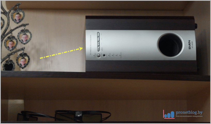 А все потому, что мой маленький сынишка (год и два месяца) уже стал дотягиваться до экрана телевизора и довольно сильно жать на него. Поэтому, дабы не попасть на битые пиксели, пришлось убрать сабвуфер, чтобы дальше задвинуть телик.