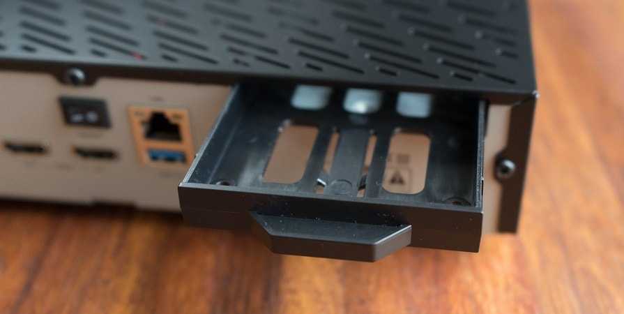 Установка жесткого диска очень проста с возможностью выбора слота на задней панели. Просто прикрепите 2,5-дюймовый жесткий диск к корпусу и вставьте его в приемник. Затем вы готовы записывать свои любимые передачи.