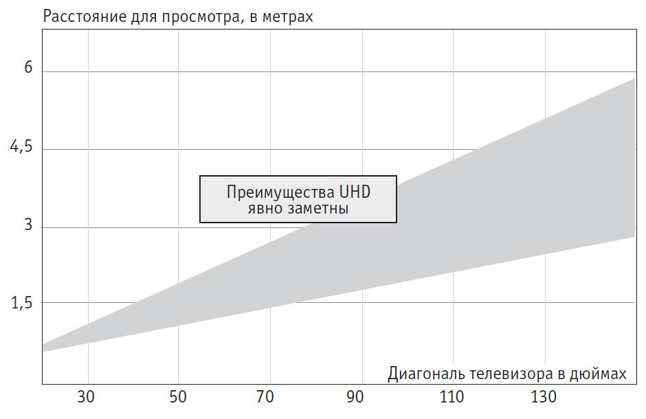 Максимальное расстояние при просмотре для UHD Разрешение UHD реализует свои преимущества на устройствах с большими диагоналями или при очень малом расстоянии от телевизионного экрана.