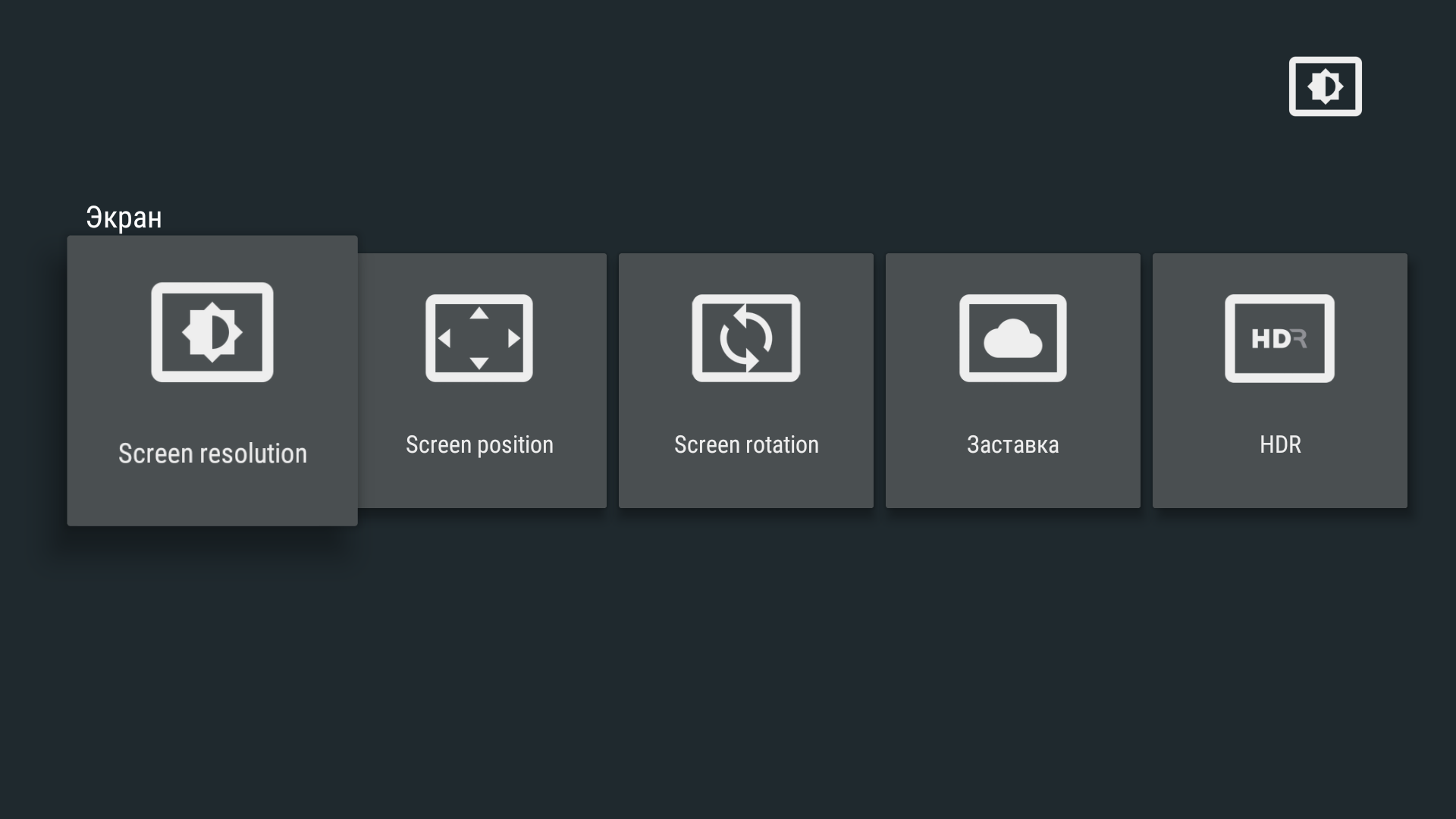 Для изменения размера изображения под конкретный телевизор/монитор, необходимо зайти в Настройки (Droid Settings, либо Settings) – Display (Экран) – Screen position (Позиция экрана) – выбрать Zoom in screen для уменьшения или Zoom out screen для увеличения изображения: