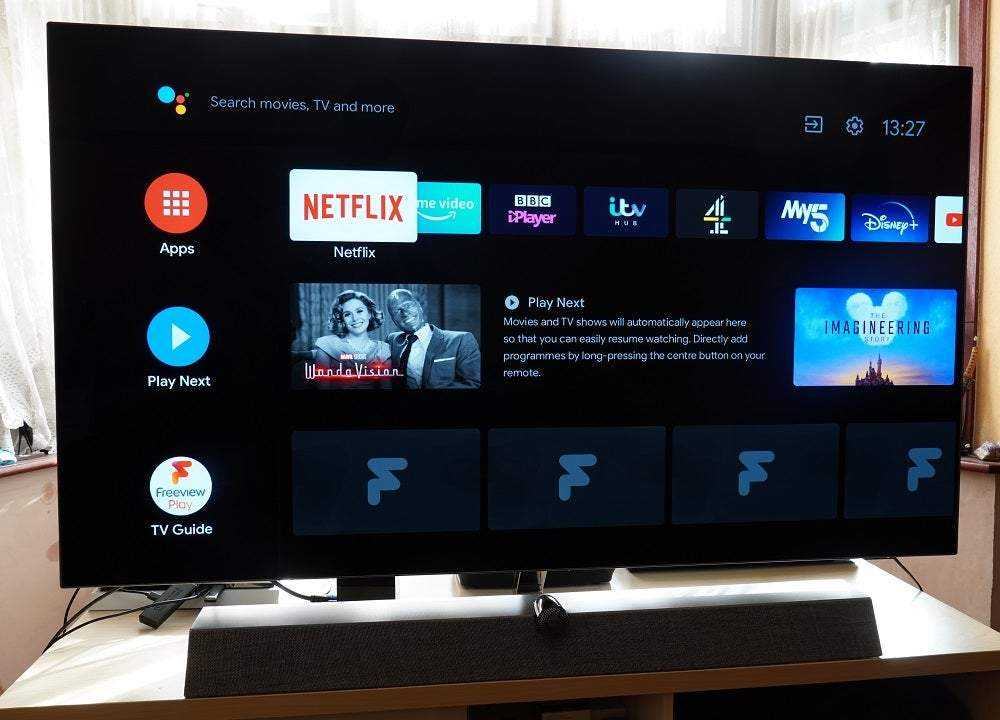 Самое большое обещание Android — это множество приложений через Google Play Store. Есть все, от Netflix, Prime Video, Disney +, YouTube (очевидно), BT Sport, Spotify, Tidal, Rakuten TV, а если вы настроены на тренировку, Peloton. Сейчас нет ни Now TV, ни Apple TV, но Freeview Play предлагает встроенные приложения для Великобритании.