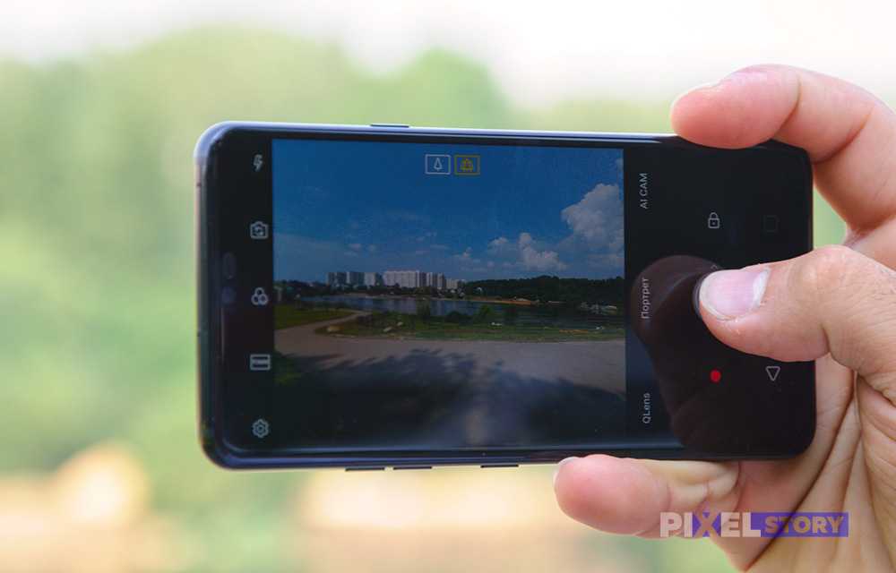 Камера LG G7 имеет встроенный ИИ в камере, который помогает определять сцену будь это солнце, небо, человек, город или природа. В зависимости от объекта корректируется цвет или можно самому выбрать какой параметр будет использован нажав на режим съемки.