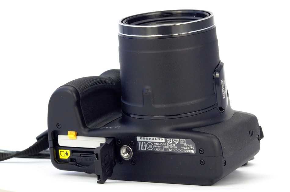 Внизу — стандартно для суперзума, отсек для батареи и карты памяти. Гнездо для штатива.