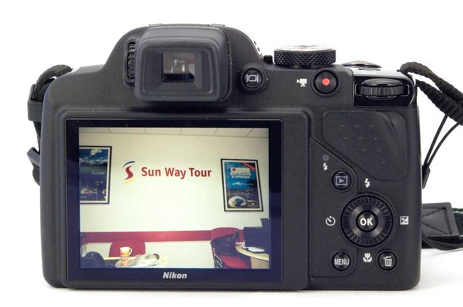 Сзади камеры расположен видоискатель и 3-дюймовый дисплей. В отличие от модели P520 он не вращается. Плюс это или минус зависит от ваших требований к фотоаппарату.