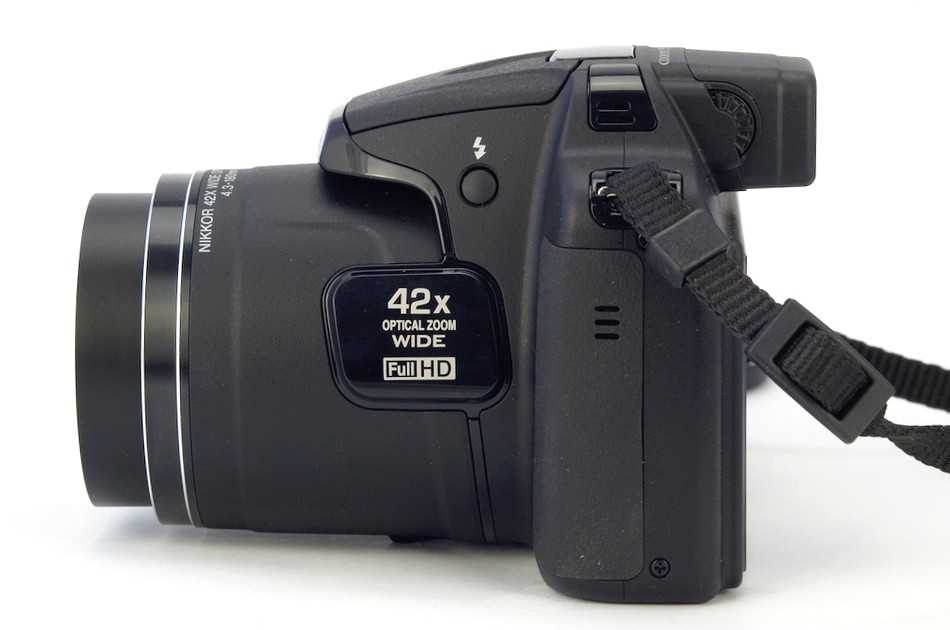 Фотоаппарат оснащен несъемным 42-х кратным зум-объективом NIKKOR 42x WIDE OPTICAL ZOOM ED VR 4.3-180mm 1:3-5.9. Таким же как и у модели P520.