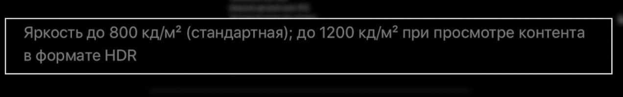 Например, при покупке iPhone 12 обратите внимание на пиковую яркость. На сайте Apple прямо указывает 1200 кд/м2 (или 1200 нит) при проигрывании HDR контента