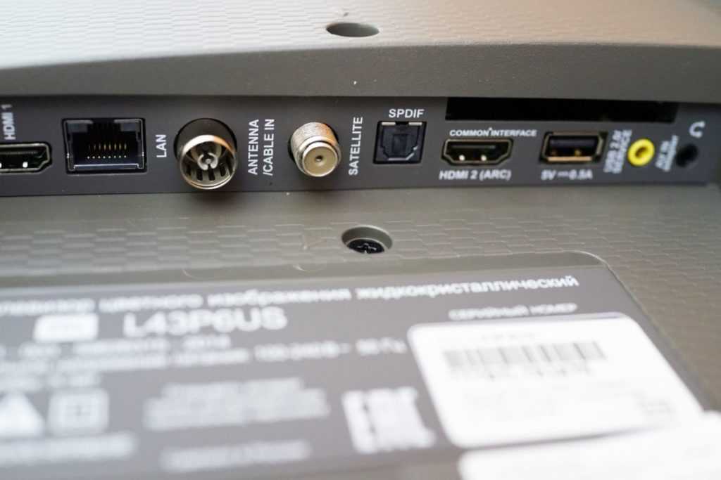 Аналоговое эфирное ТВ, транслируемое по обычному антенному кабелю, постепенно теряет свою актуальность, потому как на дворе все таки эра цифрового ТВ, и от провайдера интернет-услуг можно получить множество ТВ-каналов в более высоком качестве за меньшие деньги. Но антенный разъем в TCL L43P6US все же присутствует. Помимо него имеются все необходимые интерфейсы, которые могут пригодится любителю домашних развлечений. Здесь есть пара разъемов USB, что позволяет подключать флешки и воспроизводить с них фильмы и музыку. Присутствует несколько цифровых HDMI, а также RJ45 для подключения к проводной сети.