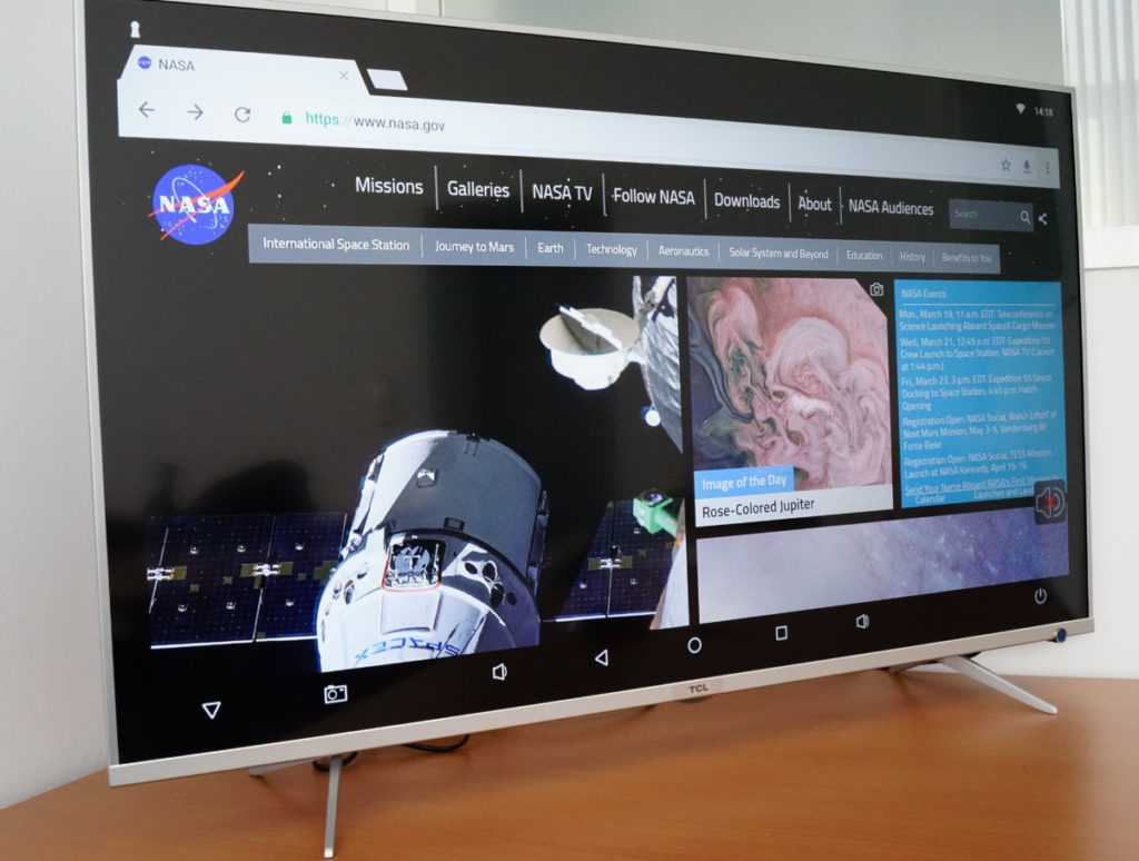 Угол обзора – 178°, время отклика пикселя – 8 мс. При воспроизведении видеофайлов частота обновления экрана подстраивается под частоту кадров. Качество картинки — лучше, чем у более дешёвых моделей, в том числе за счёт технологии Local Dimming, обеспечивающей лучшее отображение чёрного цвета.