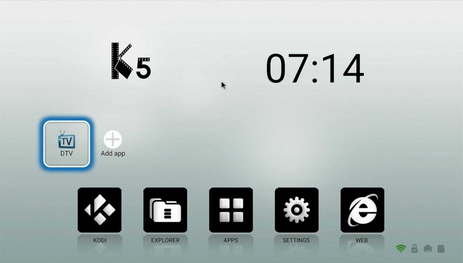 Первая иконка в разделе настраиваемых сразу намекает на главное преимущество Mecool K5 – это возможность просмотра кабельного, эфирного T2 или спутникового телевидения. Для этого достаточно запустить приложение ЦТВ и произвести сканирование в необходимом диапазоне. Одна из опций программы позволяет автоматически запускать ее при включении приставки.