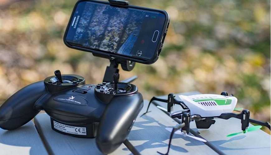 Многие бюджетные модели управляются со смартфона, пульт ДУ отсутствует в комплектации. Это снижает стоимость дрона, но ограничивает зону полёта. У солидных приборов, кроме дистанционного пульта, возможно управление со смартфона в районе уверенного приёма Wi-Fi.