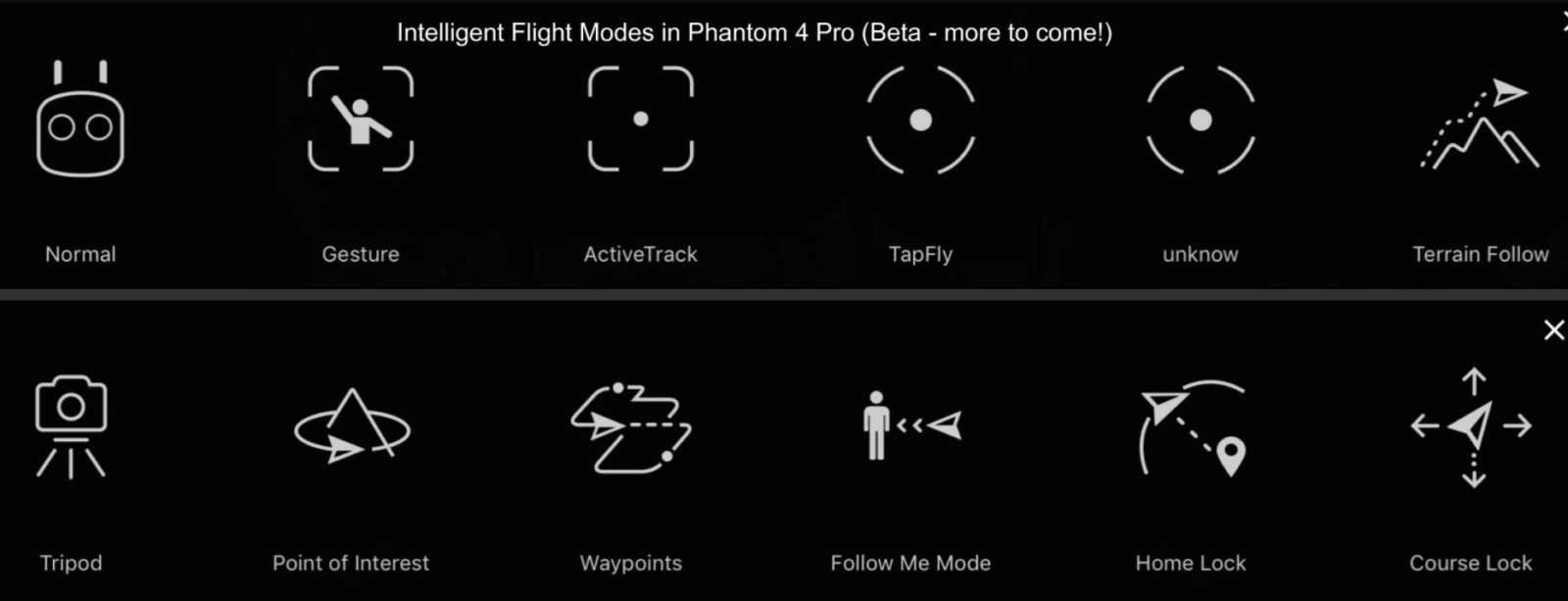 У Фантома-4 есть функция «следовать за объектом съёмки», 2 специальные камеры отслеживают, преграды, мешающие нормальному полёту, а встроенный процессор рассчитывает путь их облёта.