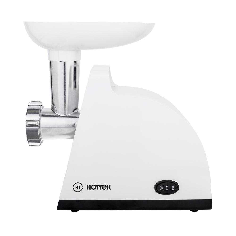Эргономичная мясорубка в пластиковом корпусе с алюминиевым лотком превращает в мягкий фарш 2,6 кг мяса. С использованием устройства можно делать колбасы и кеббе, в комплекте поставляются также толкатель и дополнительные сменные решетки. Ножки у агрегата прорезиненные, а на поверхности прибора есть антискользящие вставки — это повышает удобство применения.