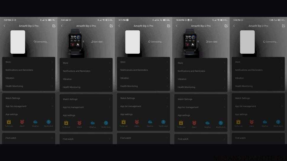 Даже когда мы использовали Bip U Pro с нашим телефоном рядом с ним, приложению часто требовалось много времени для повторного подключения и синхронизации, как вы можете видеть из наших снимков экрана ниже. Из-за этой проблемы мы также довольно часто пропускали уведомления. Это расстраивает, потому что у нас была такая же проблема с Bip U, и компания не устранила ее даже через несколько месяцев.