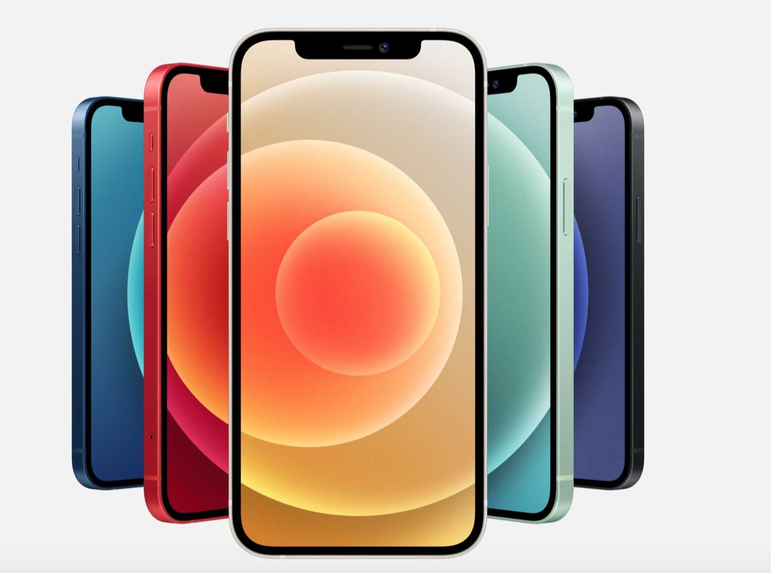 iPhone 12 доступен в пяти цветах: красный, белый, синий, зеленый и черный, корпус и рамка сделаны из алюминия.