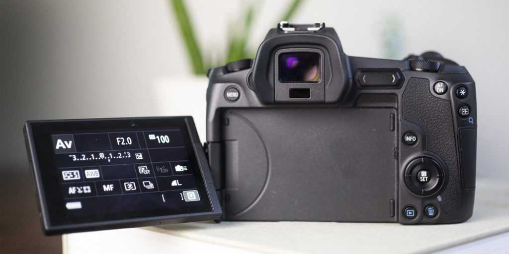 Вы не получаете дополнительный дисплей или новую кнопку «Режим». Вместо этого EOS RP имеет традиционный диск режимов и два дополнительных диска для изменения настроек. Это не обязательно плохо, так как с этой камерой не требуется много времени для ее изучения. Вы также получаете специальную кнопку для записи видео, переключатель для блокировки органов управления и многофункциональную кнопку для быстрого доступа к режимам привода, баланса белого и т. Д., Как на EOS R.