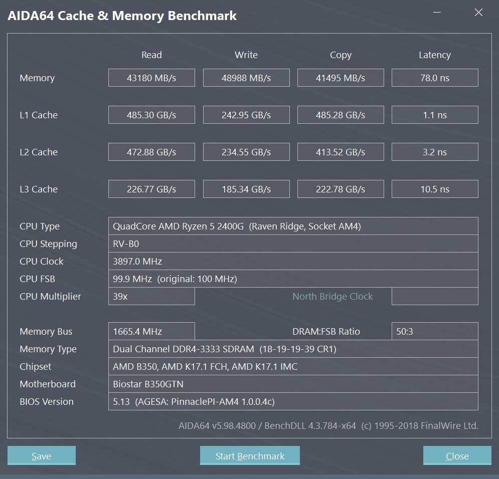 Платформа AMD AM4. В серии Corsair Vengeance RGB PRO есть комплект с теми же таймингами 16-18-18-35, но с частотой 3200 МГц при рабочем напряжении памяти 1.35 В. К сожалению повторить эти параметры нашему комплекту не удалось (система не стартовала), однако он прекрасно заработал на частоте 2933 МГц (BIOS платы Biostar не имеет возможности выбора частоты 3066 МГц). С повышением таймингов до 18-19-19-39 1T комплект смог работать на более высокой частоте 3333 МГц (напомним про нелюбовь платформы AMD к выставлению нечетных значений первого параметра CAS Latency).
