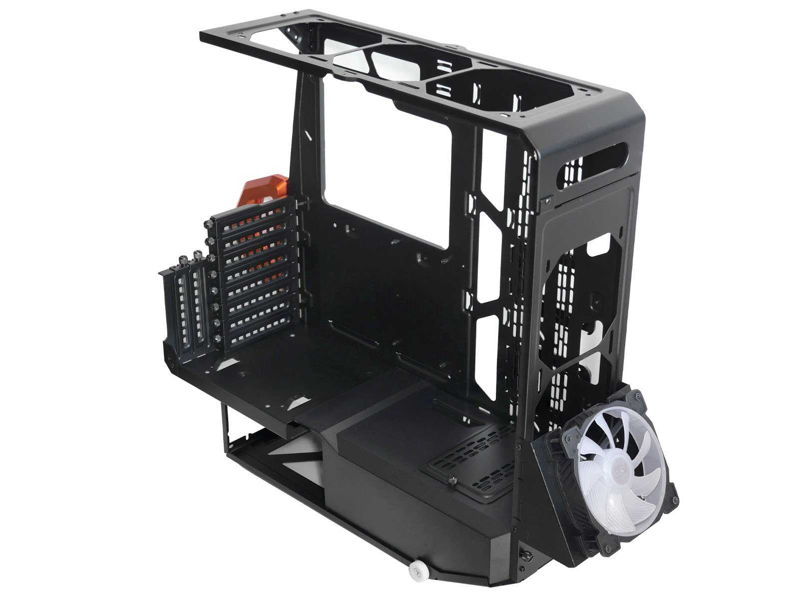 Из спецификации на корпус сразу понятно, что разрабатывался он преимущественно для использования с системами жидкостного охлаждения процессора. Внутренний съёмный каркас для комплектующих имеет запас по высоте для кулера — всего 150 мм, что уже отсекает большинство суперкулеров башенного типа.