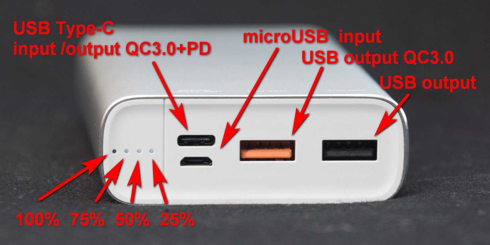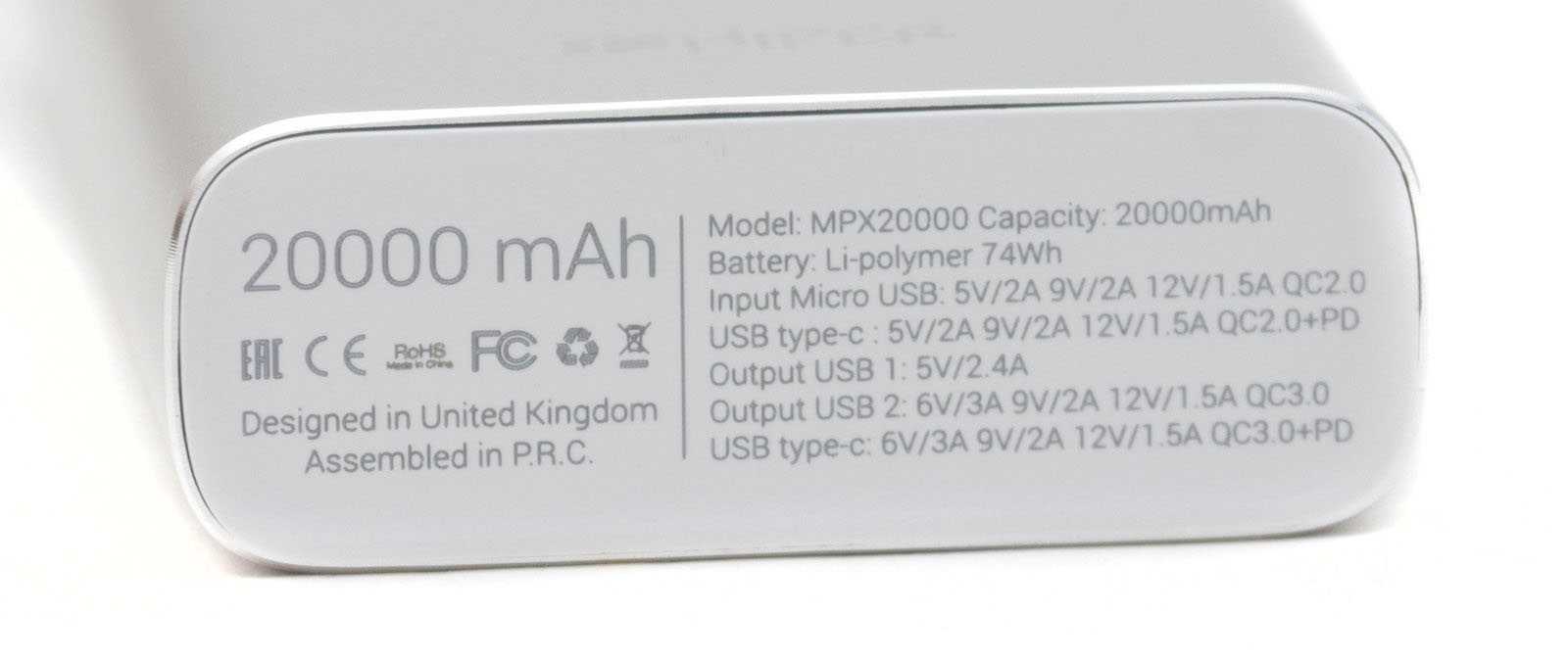 Емкость: 20 000 мАч.