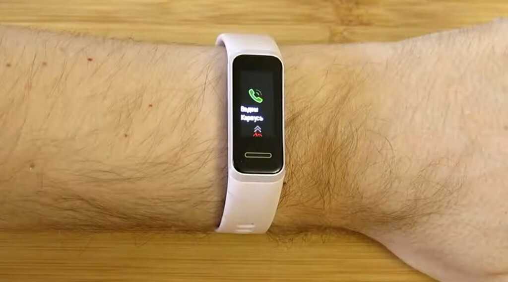 Huawei Band 4 также уведомляет о входящих вызовах. Поднять трубку через фитнес-браслет нельзя, можно только отклонить вызов.
