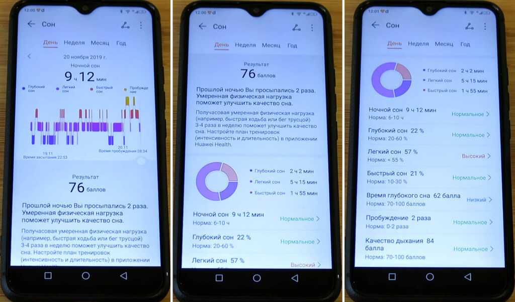 Приложение предоставляет статистику вашего сна не только за текущий день, но и за прошедшую неделю/месяц/год. Кстати, Huawei Band 4 анализирует не только ночное сон, но и дневной.