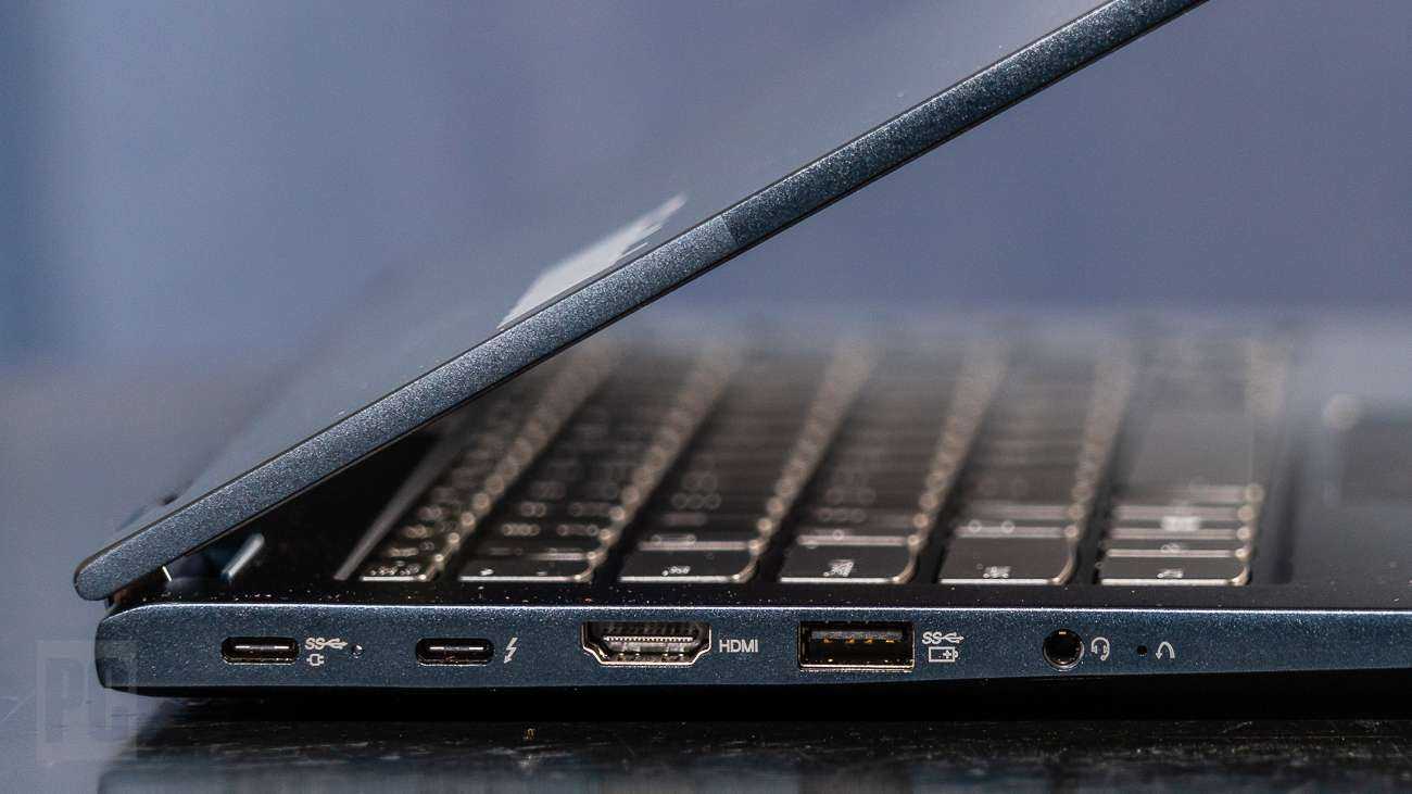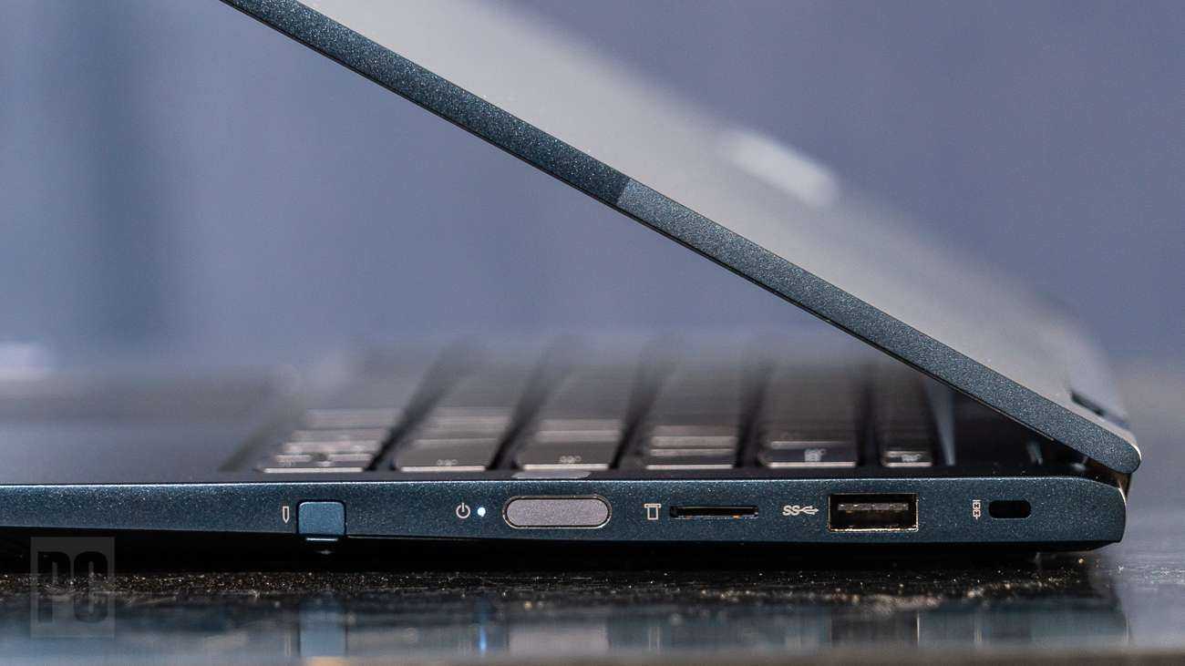 Кнопка питания, которая выполняет функцию считывателя отпечатков пальцев, находится на правой стороне, вместе с портом USB 3.2 Type-A, слотом для карт памяти microSD, слотом для замка безопасности и нишей для стилуса. Слева вы найдете еще один порт USB-A 3.2, порт USB-C 3.2 (используемый адаптером переменного тока), порт Thunderbolt 4 / USB4, разъем HDMI для внешнего монитора и аудиоразъем.