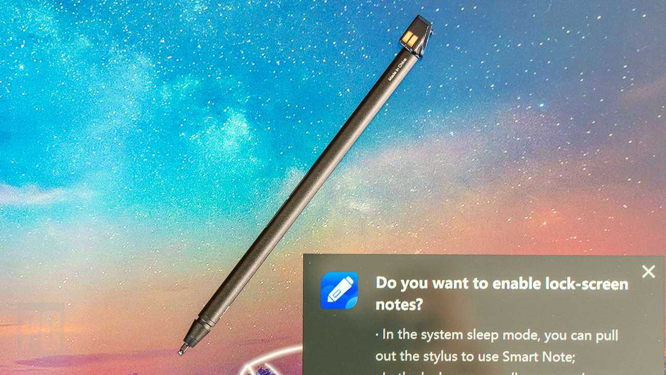 Стилус с двумя разными стержнями и блокнот для записей входят в комплект поставки