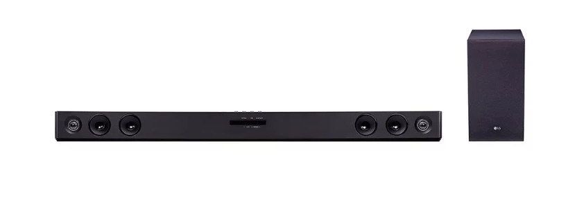 LG SJ3 – относительно недорогой саундбар стандарта 2:1. В комплекте с тыловыми колонками поставляется полноценный сабвуфер на 200 Вт, что в гаджетах по подобной стоимости встречается крайне редко.