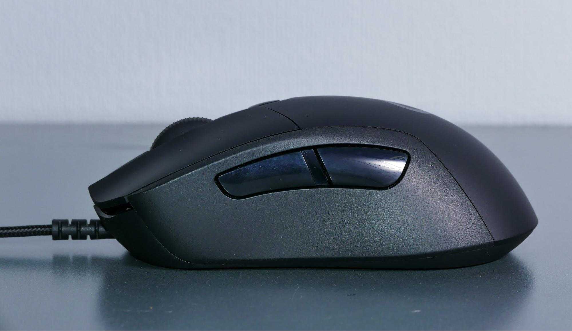 Форма корпуса такая же — для правшей, с выступом под большой палец слева. Две кнопка сверху слева от левой основной кнопки. Две кнопки под колёсиком, одна — для смены режима работы колёсика.