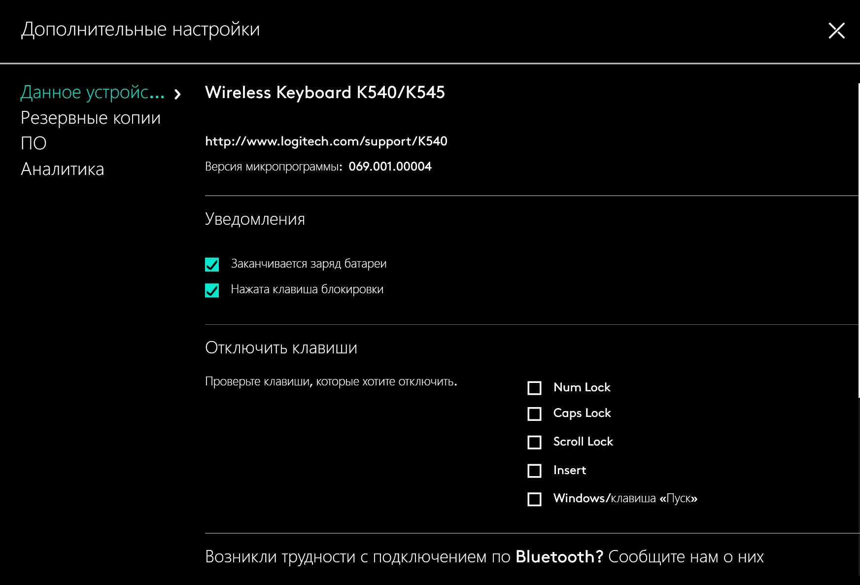 Для настройки комплекта Logitech MK540 Advanced используются «универсальные» утилиты компании Logitech. Касаются они: