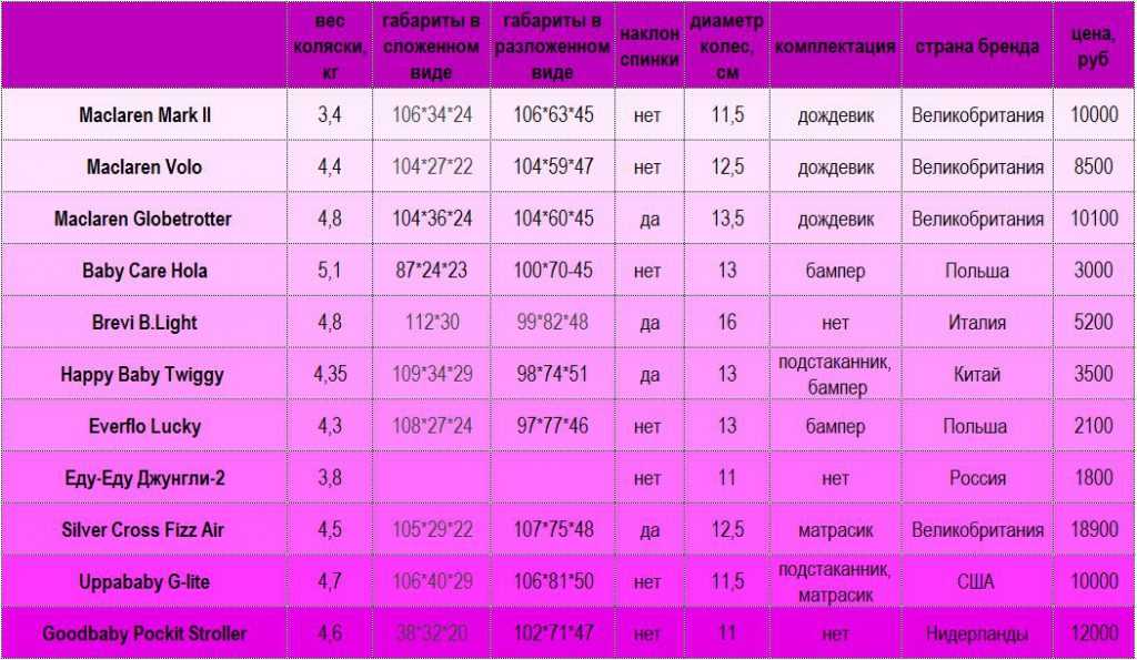 Явным лидером в категории «самая легкая коляска» является знаменитый Maclaren Mark II весом 3,3 кг.