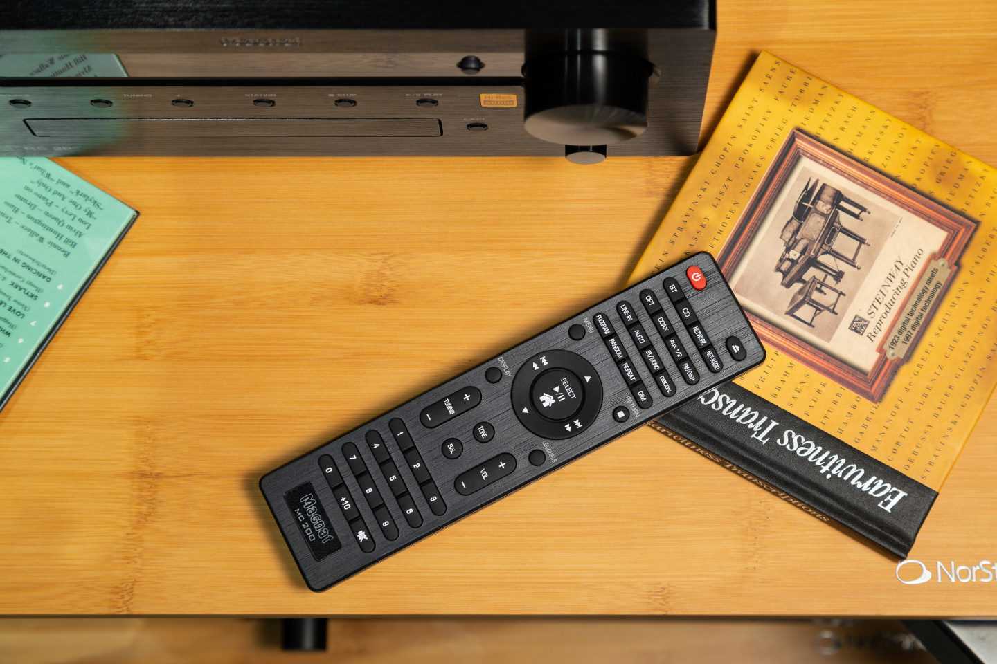 Пульт, идущий в комплекте с проигрывателем, способен управлять несколькими компонентами Magnat. И хотя он не является образцом дизайна — вполне удобен и эргономичен. Корпус плоский, что заставило отказаться от стандартных батареек АА/ААА и внедрить питание от литиевой «таблетки». Зато сам пластик прорезиненный, за счет чего ПДУ очень приятно лежит в руке.