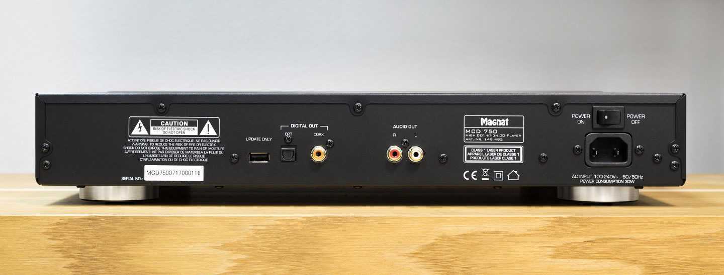 И похоже, что в Европе ситуация аналогична, иначе как объяснить, что единственный источник, входящий в серию М 700 — это проигрыватель компакт-дисков? Причем в абсолютно классическом его понимании, без поддержки SAСD и даже HDCD, без USB портов для флешек с музыкой и каких-либо других современных функций. Под крышкой Magnat MCD 750 находится лишь CD-транспорт Toshiba, блок питания с раздельными линиями для механики, управления и аудиочасти, и основная плата с микросхемой ЦАП Wolfson WM8740 и аналоговым выходным каскадом, содержащим по две микросхемы Texas Instruments NE5532 на канал.